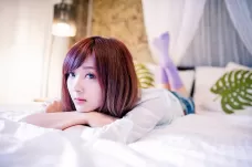 热裤宽衬衫躺在床上 这个也是无敌的诱惑了,真的是超级得劲的啦 !